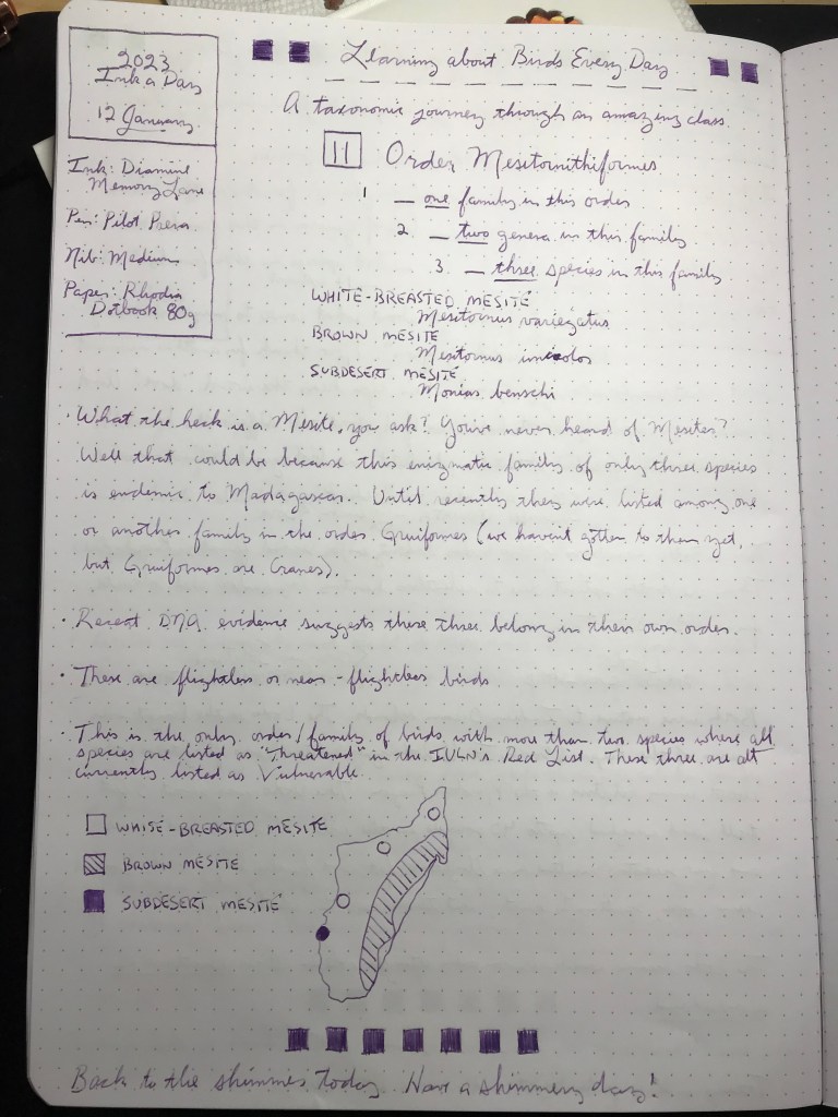 Memory Lane had a promising beginning, and faded on me throughout the day. Sadly, I added Lisa Marie Presley’s name to the Calendar of Days just moments ago. Never heard of Mesites? There’s only three species of them, and they’re all endemic to Madagascar.