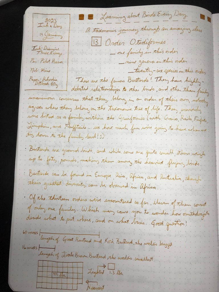 A beautiful color reminiscent of the Gold brought by the Magi. And hey… Bustards! (careful, that’s with a “u”). More gorgeous ink and more amazing birds for your Saturday 🙂