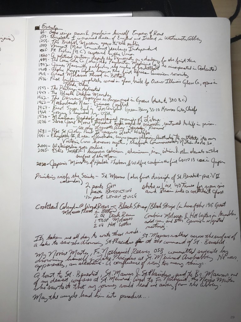 Sorry for the delay. The TURACOS are fascinating birds, and Diamine’s “Pick Me Up” is a fascinating, mysterious ink that cannot be comprehended in a single day. Today is the (pre-Vatican II) feast of St Maurus, the first disciple of St Benedict. One of my two best friends as a Benedictine monk was Br. Maurus Zoeller, OSB (from Tiffin, Ohio). St Maurus was the first discipline of St. Benedict, and was commanded by the holy founder to run across the surface of the lake to save St Placidus from drowning, which he did. My Novice Master, Fr Nathaniel Reeves, OSB, committed suicide by drowning himself in Lake Placidus at St Meinrad after I left. I had just arrived at the point in prayer where I was prepared and wanted to spend the rest of my life cloistered as a Benedictine monk. Fr. Nathaniel (and G-d) initiated another path for my life. Part of my heart will always be cloistered. But most of my heart is out here in the world. Cheers to St Benedict and St Maurus. Prayers for Father Nathaniel, an alcoholic. Eternal rest grant unto him, O Lord, and may perpetual light shine upon him. May he rest in peace.