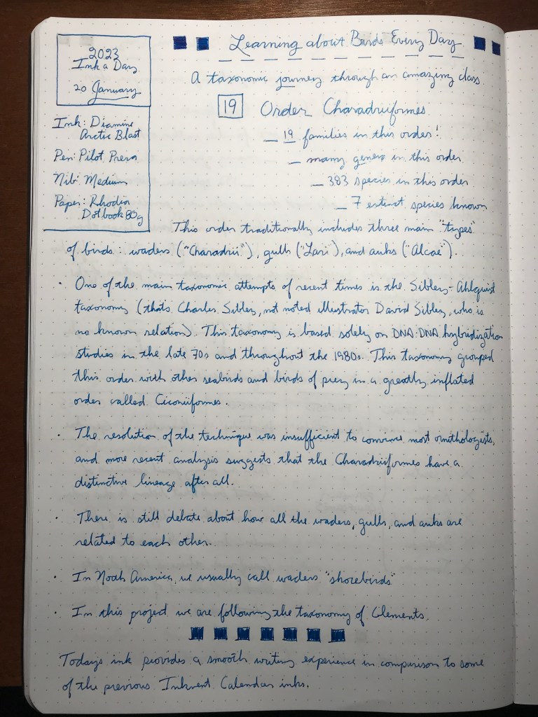 Today’s ink was fun to write with, it was pleasant write with, it was smooth to write with: all the good things today! Today’s avian order are the Waders and Allies (shorebirds, gulls, and auks).