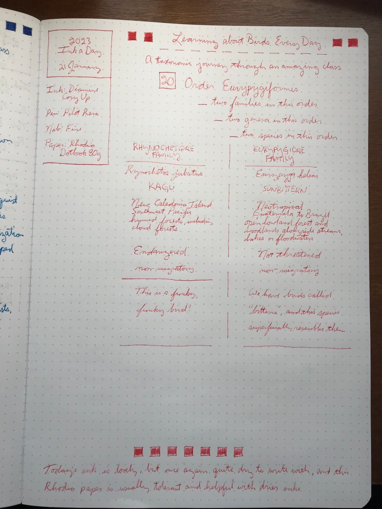 One response to “21 January – Diamine Cosy Up (& Order Eurypygiformes)”