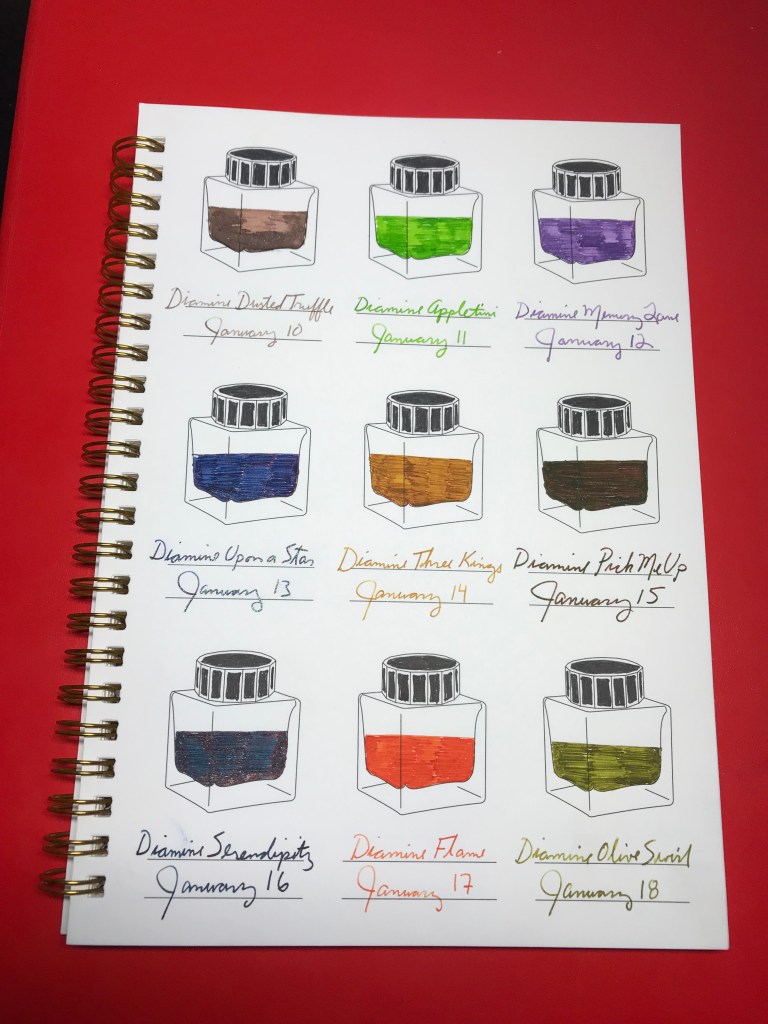 And the top two are nearly impossible to rank for me. So, it’s a virtual tie, but in second-winningest ink of the month goes to Diamine Alpine, and the winner for January is Diamine Spiced Apple! Thanks for joining me on this yearlong journey. Tell your friends, feel free to share, subscribe to the blog, and tomorrow you’ll have a list of February’s inks!