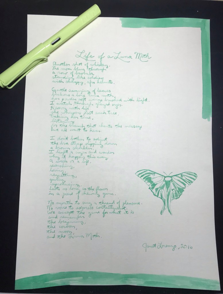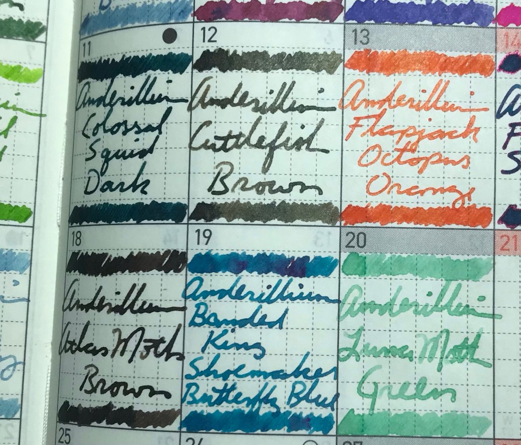I always think of a Luna Moth as yellow-green, and this ink seems more minty to me, so I’m struggling a bit with this one. But give it a different name, and it’s another lovely ink!