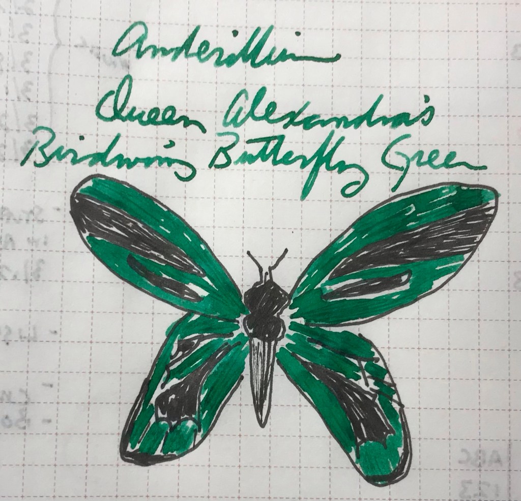 The two greens complement one another well, I thinkDrawing butterflies is just plain difficult“…had a memory that he himself had once compared to the Queen Alexandra Birdwing Butterfly, in that it was colorful, flitted prettily hither and thither…” -Douglas Adams, Dirk Gently’s Holistic Detective Agency