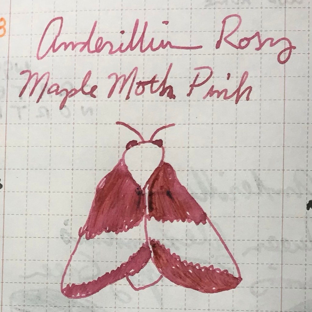 It’s pretty tough to draw this moth with only black and pink, as the species is entirely pink and yellow, so you’ll have to look this one up or use your imagination. This species can be found throughout eastern North America. It is a small moth that prefers (you guessed it) maple trees. It was first described in 1793.