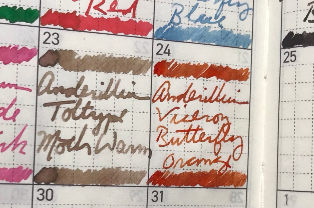 Sometimes you might be forgiven for thinking a viceroy is a monarch. They are smaller than monarchs, and are known as Müllerian mimics of the monarch, as they are distasteful to predators. It they’re also the last species to be represented by Anderillium inks. There’s one more limited edition ink tomorrow, it I hope you’ve enjoyed inks representing birds, cephalopods, and Lepidoptera.