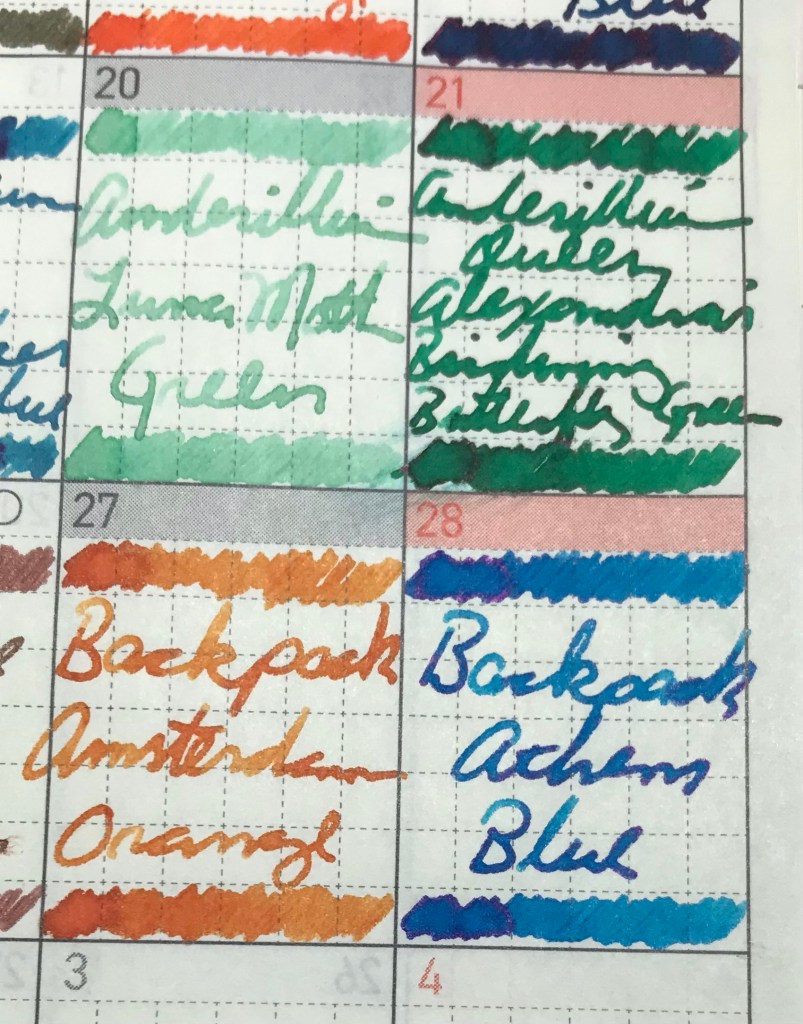 Solid ink from a company that currently has only eight colors (and has for as long as I’ve known about them). Athens Blue is lovely.