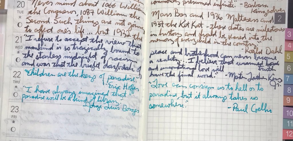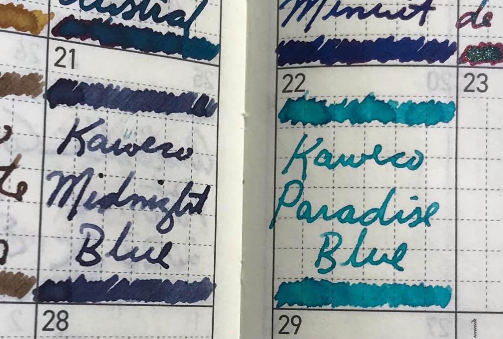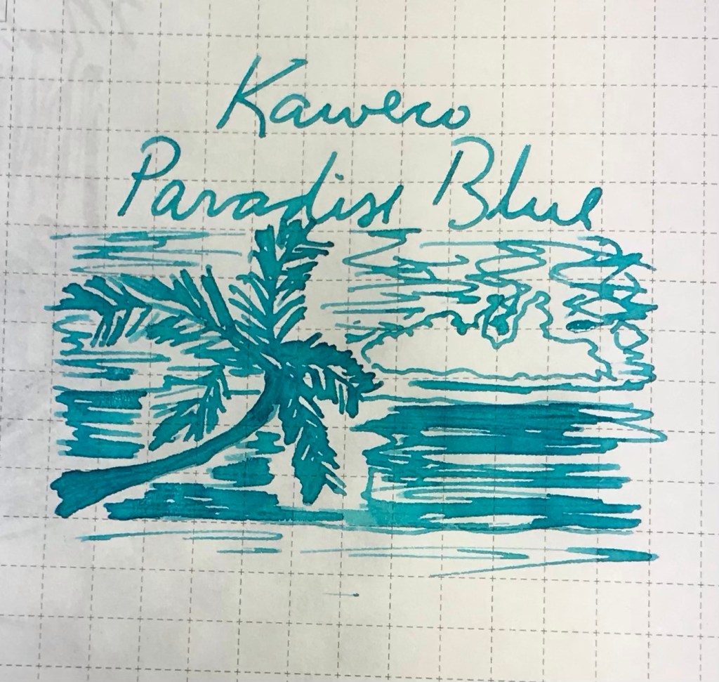 Turquoise today. There are some in this hobby who are passionate about turquoise, and that’s awesome (there’s something for everybody). I’m not one of them. It’s not that I don’t like turquoise; I just think most turquoise inks are fairly similar. Then again, non FP users and inkaholics might say every brown, every black, every blue looks pretty much the same!