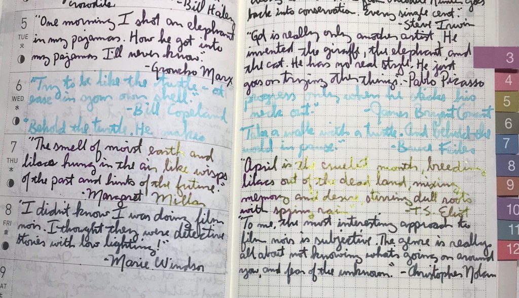 From the Noir Ink Collection (I also have Copper Noir, but not coal, jade, mercury, mulberry, ocean, raven, rose, or smoke), this is another terrific blue black.
