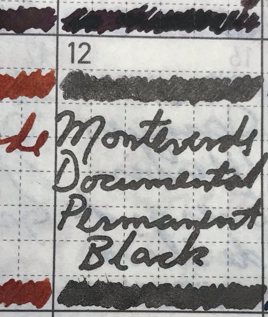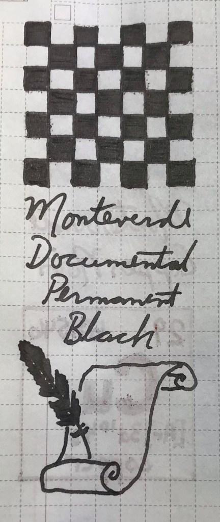 As we continue through the Monteverde lines, today’s ink is the one I use for my daily journal. I switched to an archival ink several months ago, realizing that most of these beautiful, modern fountain pen inks would be illegible if they are hit with water. Although this is a black, it writes as a smooth grey, and I love seeing it flow from my Edison LE Comet each morning and evening as I take some time to hold a mirror up to my day.
