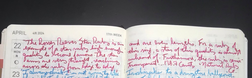 More saturated and more vibrant than yesterday’s Rose Quartz, this ink pretty much puts Rose Quartz out of business as far as I’m concerned.