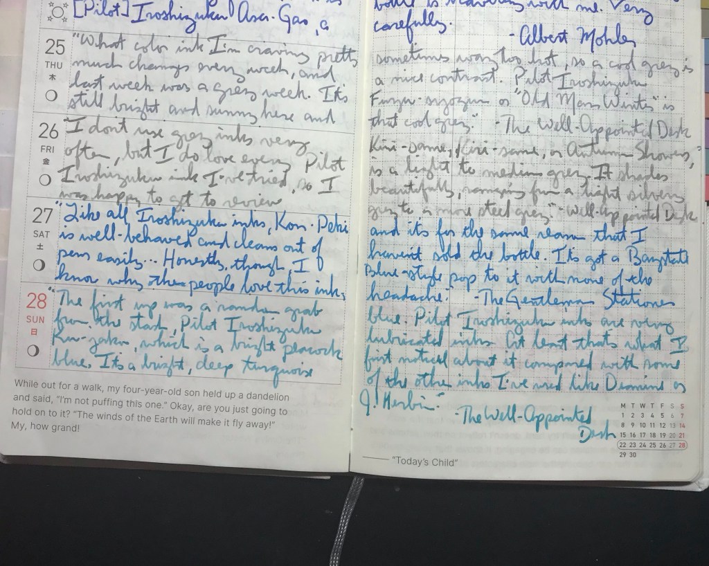 Back to the turquoise department for all you peacock blue fans out there. Another lovely color, lays down wet and smooth and without any trouble whatsoever. These inks are simply a joy to write with,