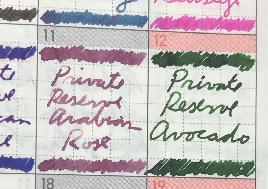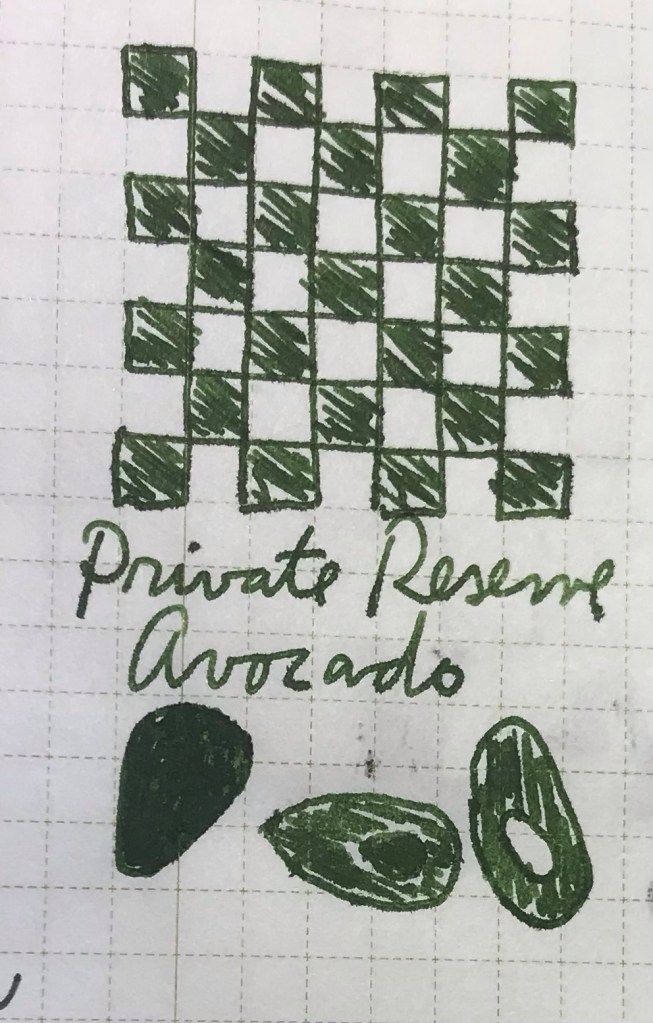 another ink with nice shading, suggesting both the rind of the avocado in its darker shade and the meat in its lighter. This would be an office-appropriate non blue or black ink, in my opinion.