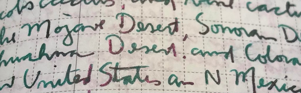 Man, this is an awesome color. So much going on. Is it red? Is it green? Red with green shading, or green with red shading? And is there some golden hues coming through as well? This is an alluring desert cactus ink right here.