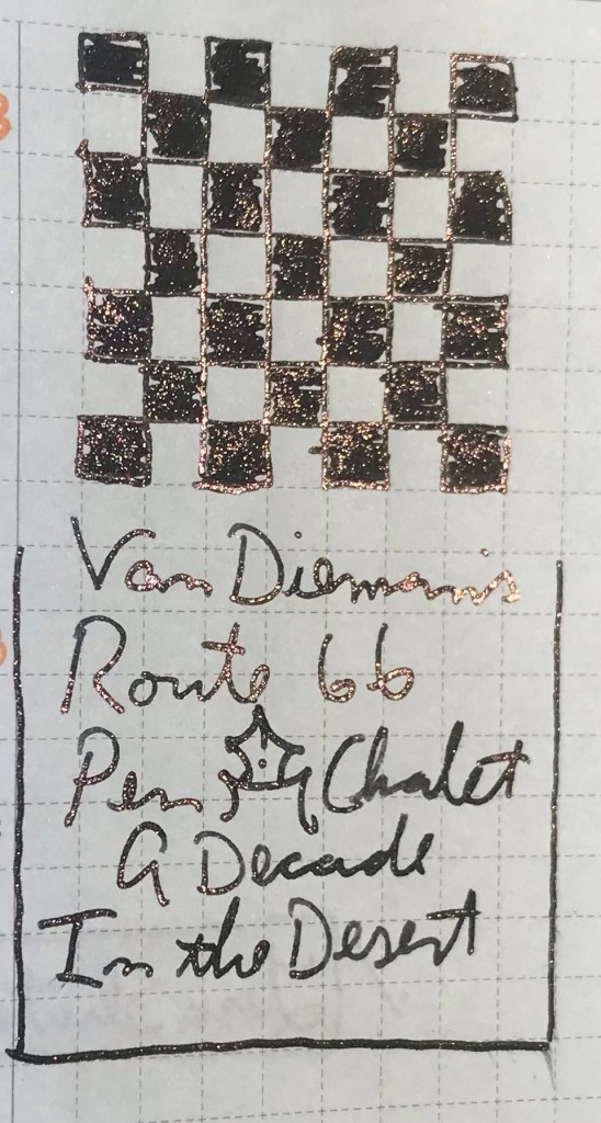 Some people adore glistening, or shimmering, ink. These inks basically have glitter in them. Because I use fine nibs for my ink a day project, this can be problematic, as these inks will behave better (not always great, but better) in broader nibs. But… today’s ink absolutely knocked my socks off! It’s lack ink. You know: black. Use it at the office. But it’s also shimmertastic! Usually shimmer inks are bright colors, so this one really has me excited. Enjoy!