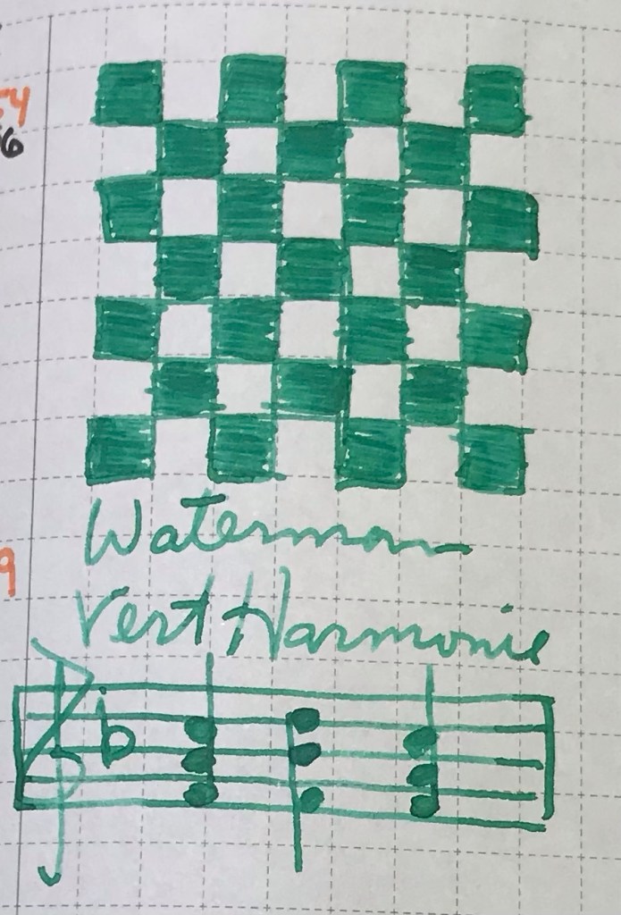 Harmonious Green it is, indeed! This pale greenish with a hint of blue is quite striking, nice-writing, and makes one feel in harmony with the world.