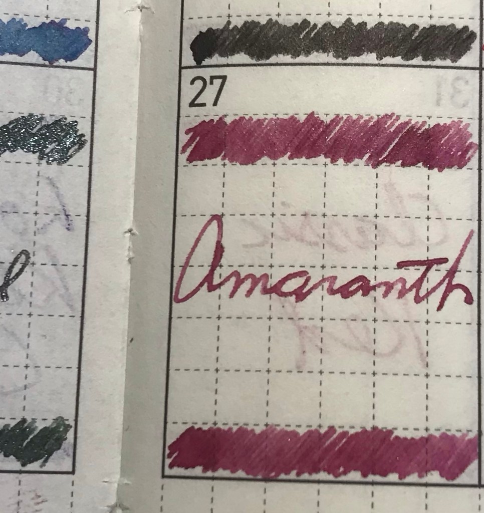 Saturated, beautiful cranberry. can’t say anything negative about this ink. Solid. And you can get 30ml for about three bucks.
