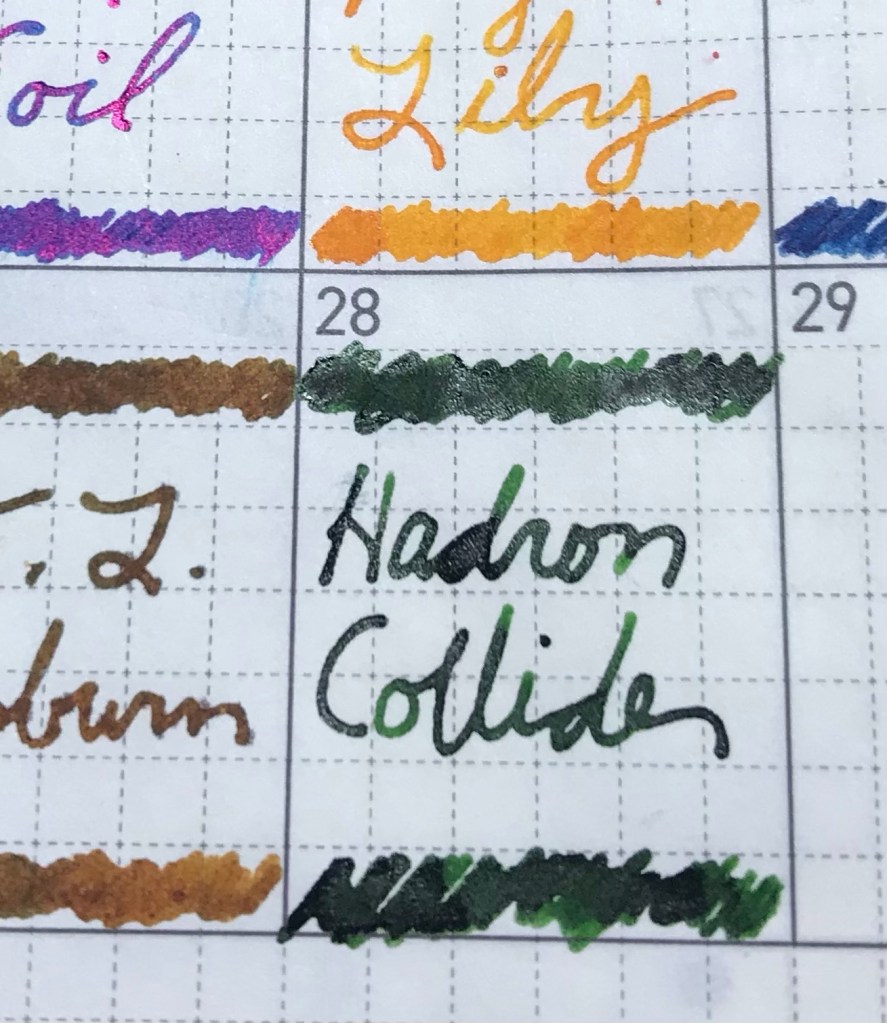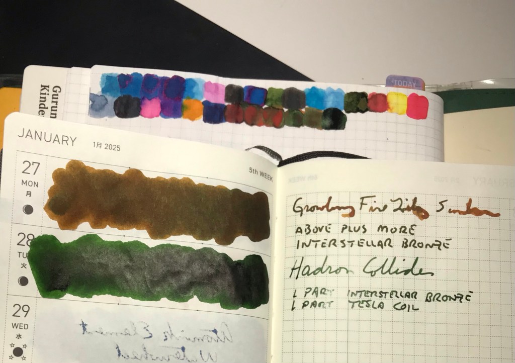 These two Atomink Element ink from Birmingham Pen Company are the showstoppers, and today I woke up thinking “Let’s just get it over with and crash them into each other right now.” 1:1. See who survives. See what happens. Well… I think Interstellar Bronze is outmatching Tesla Coil in terms of dominant ink that shines through the resultant Hadron Collider. So perhaps tomorrow we’ll add more Tesla Coil and see if we can. A lance them out in the lab to create some new alchemy!