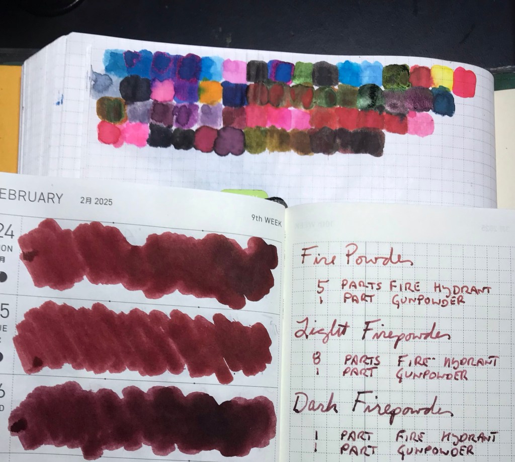 Has switching from 5:1 to 8:1 to 1:1 made much difference at all?! I suppose in the grand scheme if you’re making a singular custom ink, you’d want it as precisely the color you’re after as possible. But these are very, very close. Over the next three days we’ll try the same experiment with Ladybug and Gunpowder.